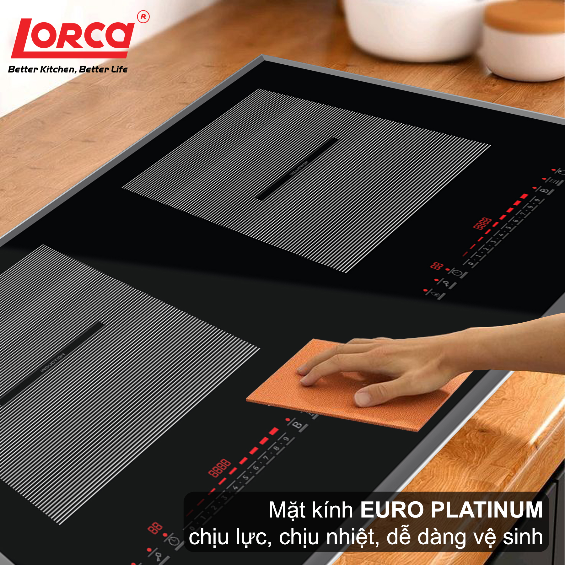 Nhấn nút khóa trong 3 giây để khởi động chức năng này, Đèn báo phía trên nút sẽ bật sáng, màn hình đèn LED sẽ hiển thị “Lo”. Trên thiết bị bếp này, tất cả các nút đều không thể hoạt động nữa, tuy nhiên để đảm bảo an toàn, nút nguồn BẬT / TẮT vẫn sẽ hoạt động, vì vậy có thể tắt bếp bất cứ lúc nào; nếu người dùng bật bếp lên, bếp vẫn ở chế độ Khóa. Nhấn giữ nút khóa trong 3 giây để tắt chức năng này.