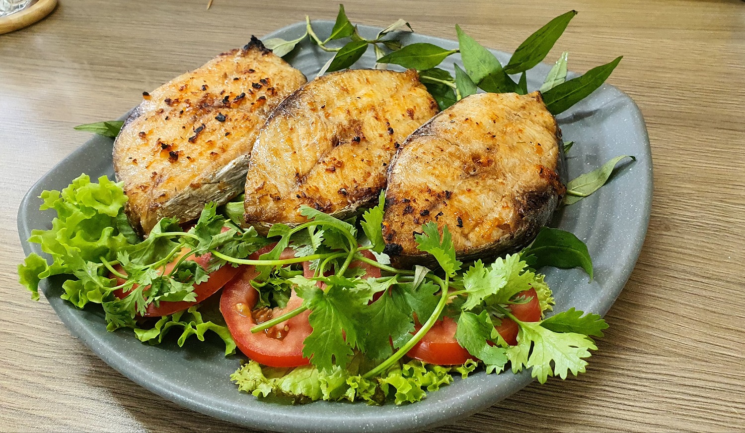 - Cá nướng giòn tan, thịt chín mềm, thơm ngon.
