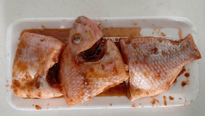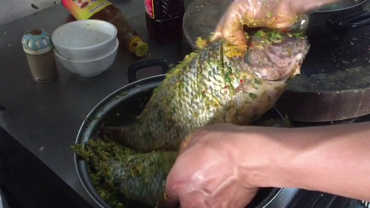 - Cá rô phi khi mua về mang rửa sạch với nước, cắt mang, moi ruột, cạo sạch vảy rồi ngâm trong nước muối 5 – 10 phút.