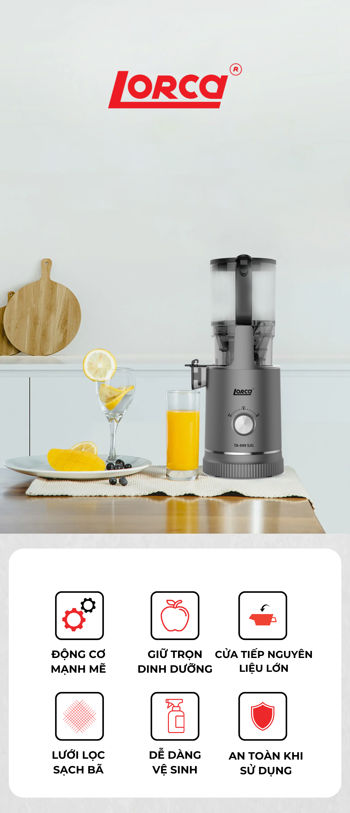| Tên sản phẩm | Máy ép chậm LORCA TA-999 SJG |